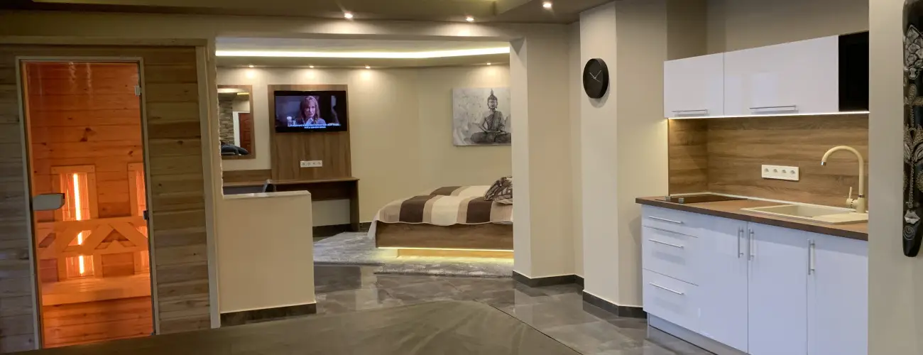 Képzeljen el egy felsőkategóriás, luxus magánlakosztályt, ahol sűrű lombú erdők, festői szépségű tájak ölelésében teljes körű, romantikus wellness pihenés feledteti a rohanó mindennapokat. A 2 fő zavartalan, intim kikapcsolódására megálmodott miskolctapolcai The Jakuzzi Room elszeparált, sikkes lakosztálya egyedülálló búvóhelyet kínál a nyüzsgő hétköznapokból való meghitt elrejtőzéshez. Modern eleganciát sugárzó, pazar szoba: itt a tökéletes feltöltődés élményében lehet majd részük.